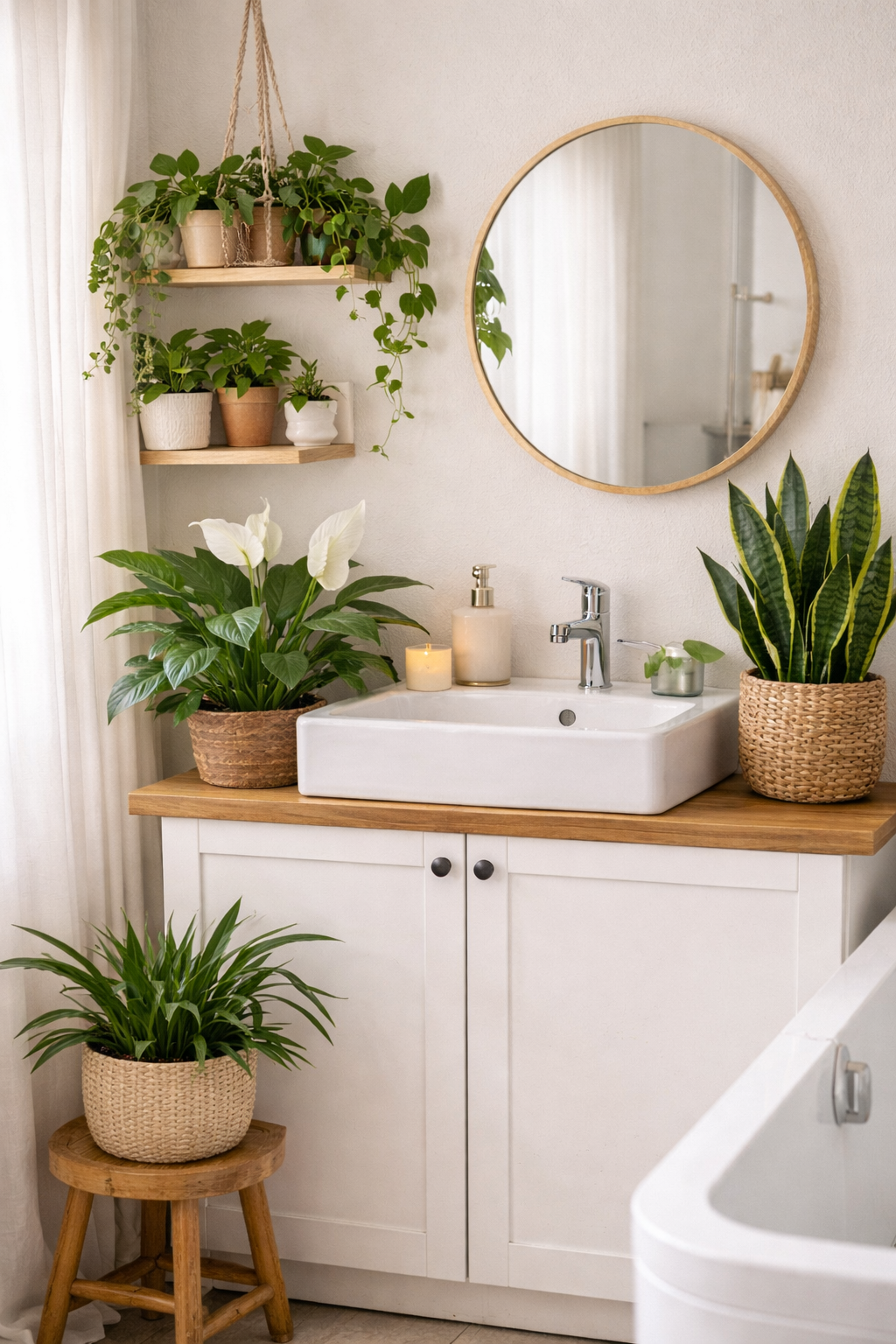 Muita gente se surpreende ao descobrir que o banheiro pode ser um ótimo espaço para plantas. No entanto, é fundamental escolher espécies que se adaptem à umidade e à luz indireta.