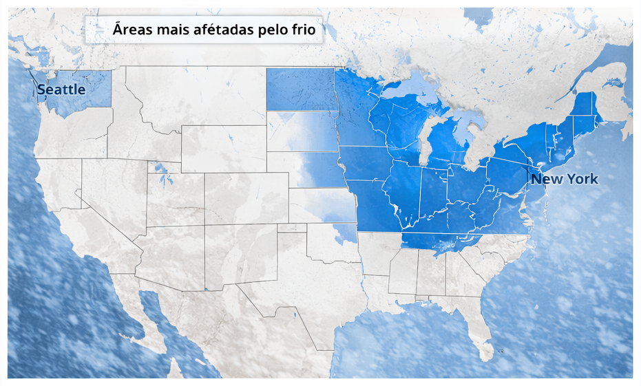 Uma forte onda de frio nos Estados Unidos tem atingido grande parte do país nos últimos dias. A massa de ar polar provocou queda drástica nas temperaturas, além de neve intensa, ventos congelantes e condições perigosas em diversas cidades.